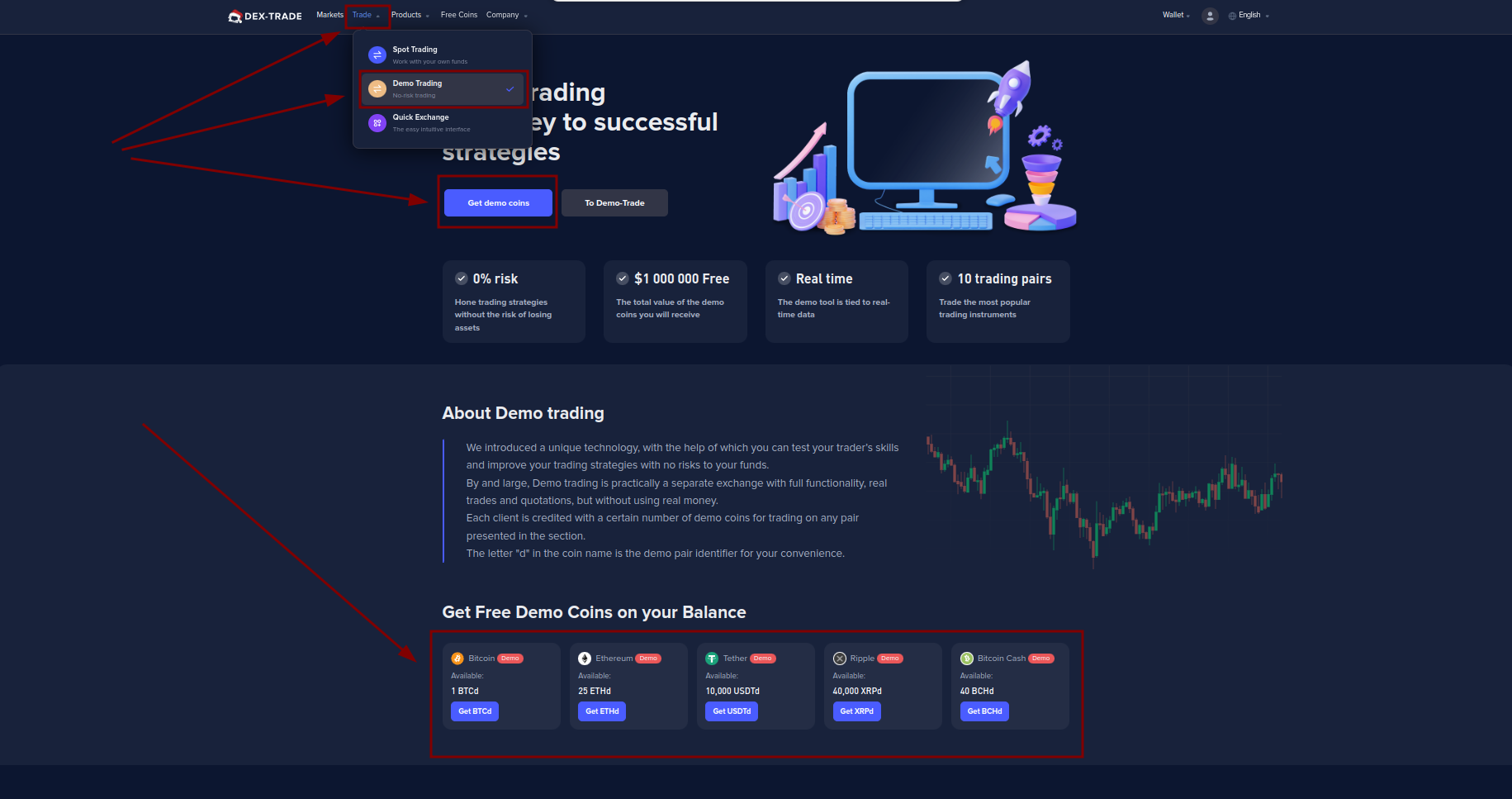 3. Click on the “Get demo coins“ button.